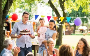 Family celebration outside in the backyard. Big garden party. Birthday party. A young man holding a birthday cake. There are mornings that begin like any other and end by changing …